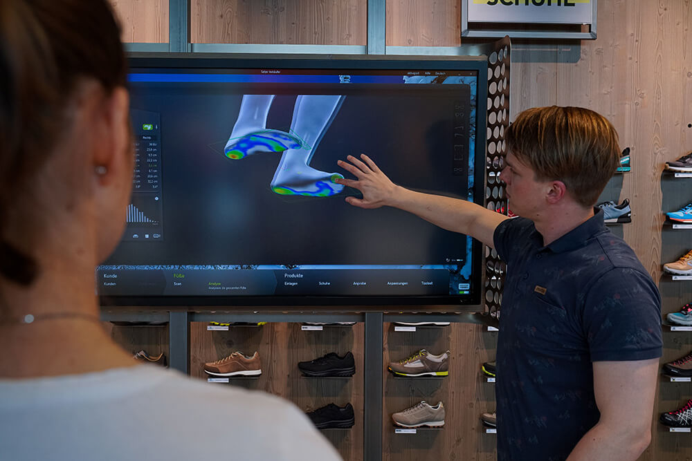 - Fußanalyse mit virtueller Anprobe zur Schuh-Vorauswahl