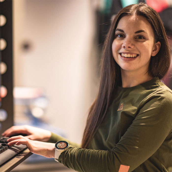 Im Verkauf berät sie dich immer mit viel Hintergrundinfos und hält unseren Jungs den Rücken frei!